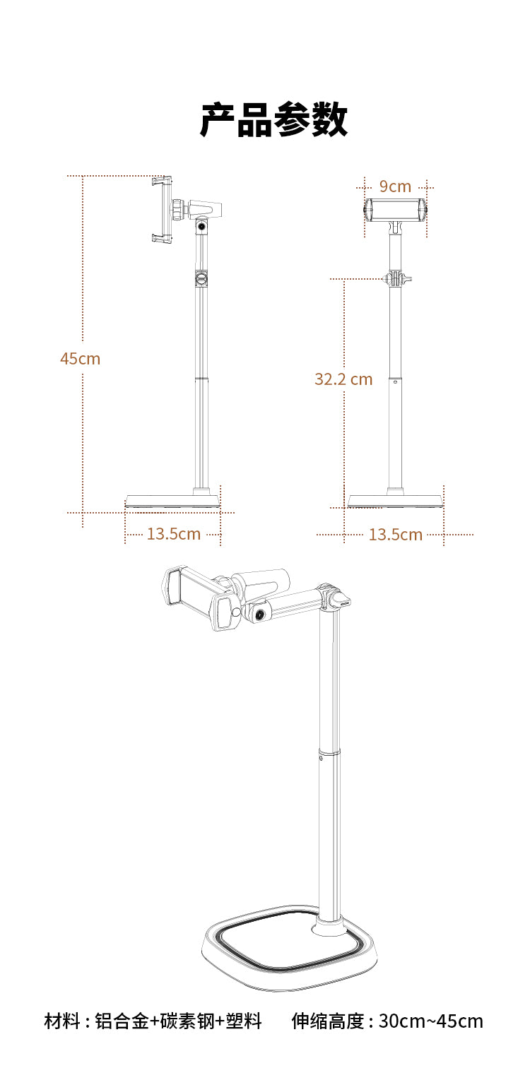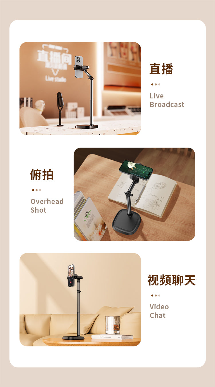 1.Product Name: iDock 2025 Portable Adjustable Phone Holder Desktop Live Streaming Dual Arm Foldable Phone Stand