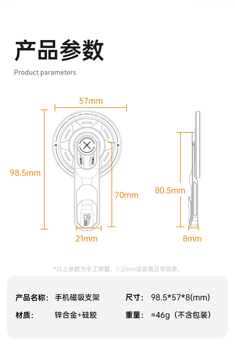 3.Material: Aluminum Alloy+Silicone+N52 Neodymium Magnet