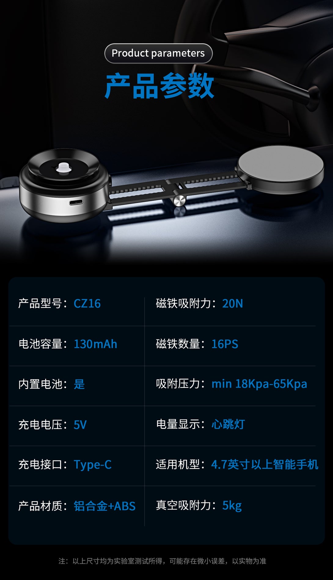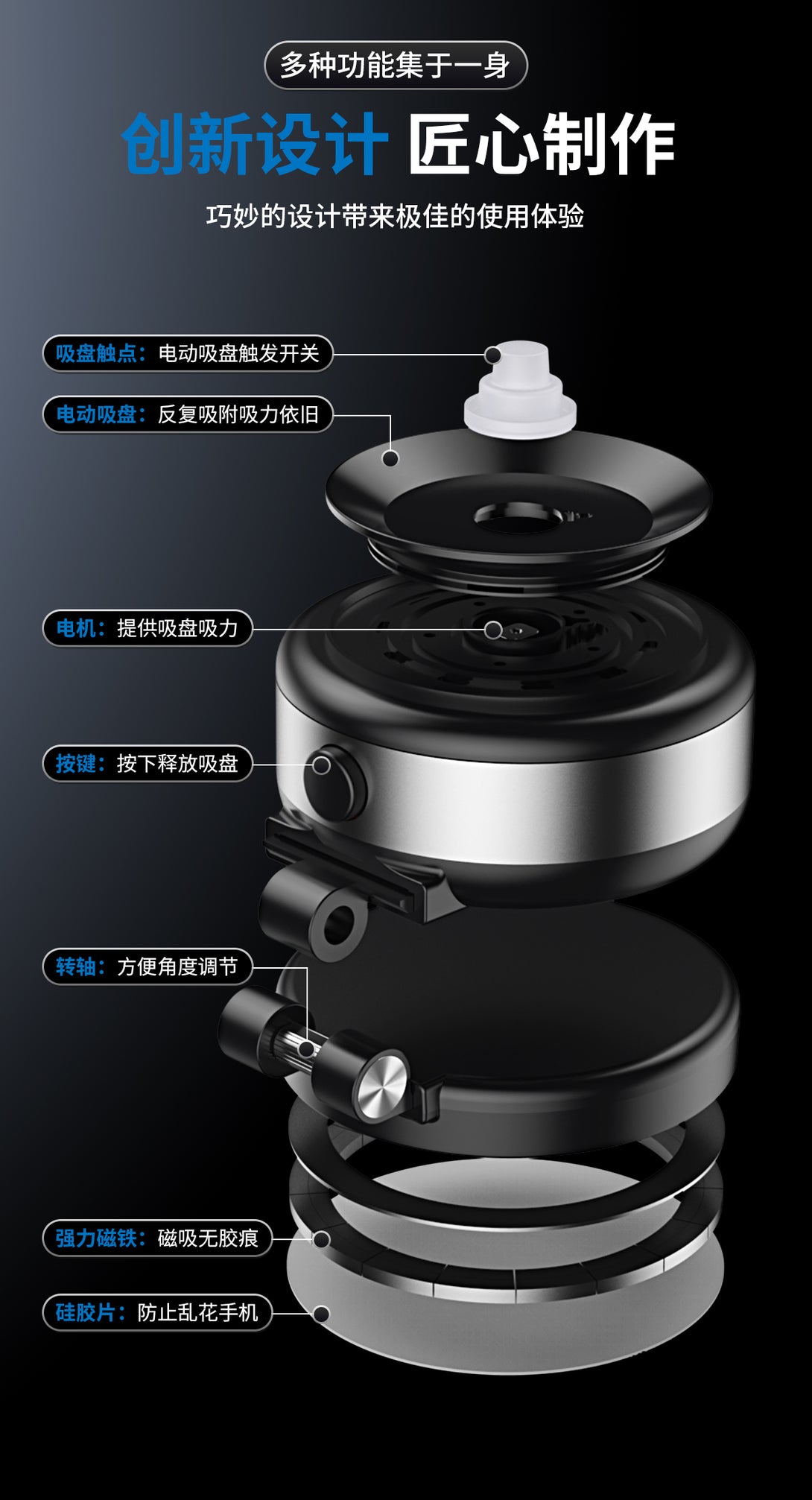 3.Material: Vacuum Suction+Silicone+N52 Strong Magnet