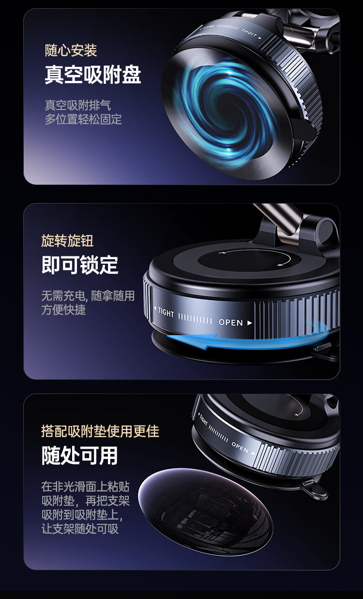 1.Product Name:iDock Portable Folding Adjustable Vacuum Suction Magnetic Phone Stand Car Phone Holder