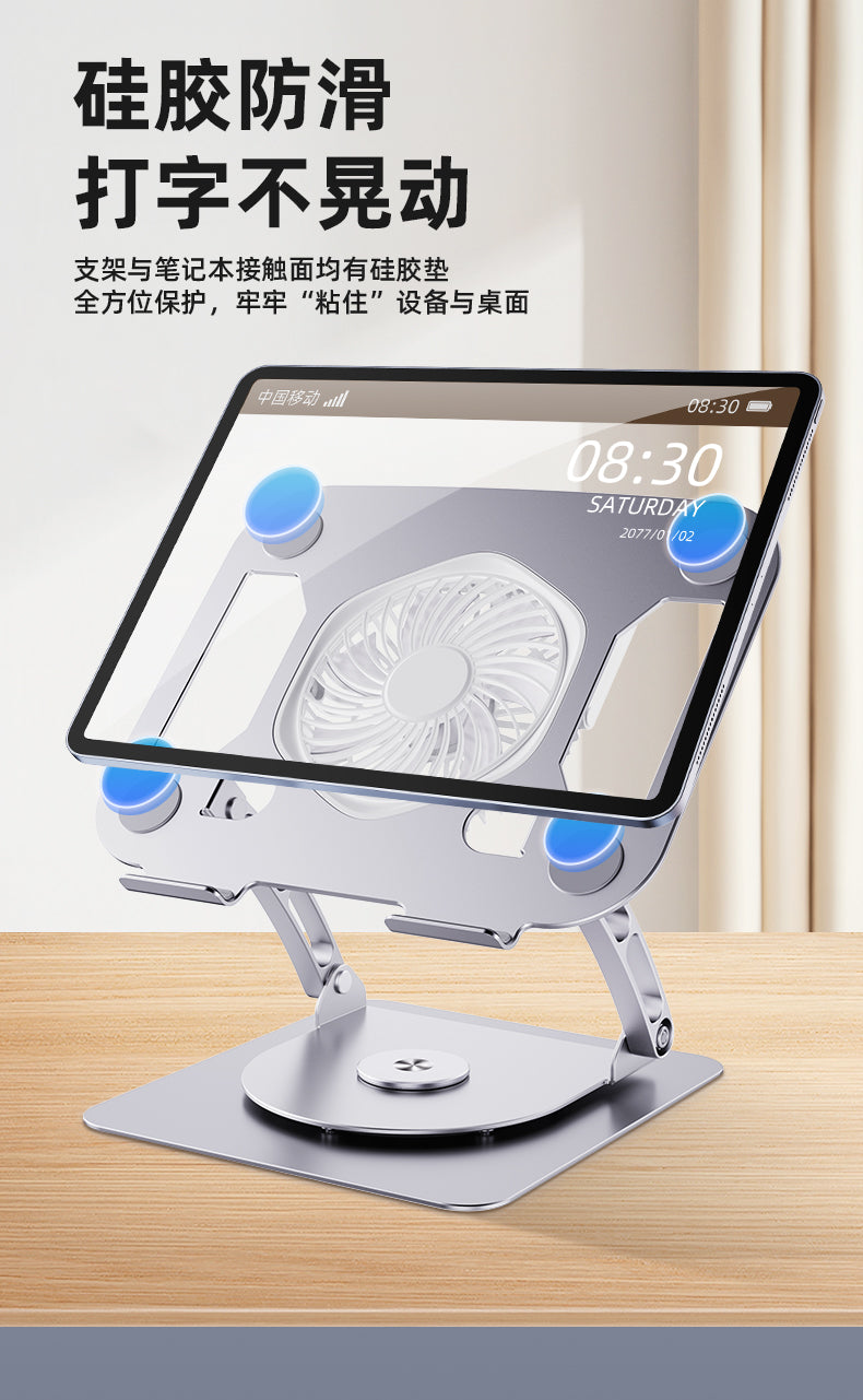 1.Product Name: iDock Portable Folding Ergonomic Carbon Steel Laptop Cooling Stand 360° Rotation Laptop Holder with Detachable fan